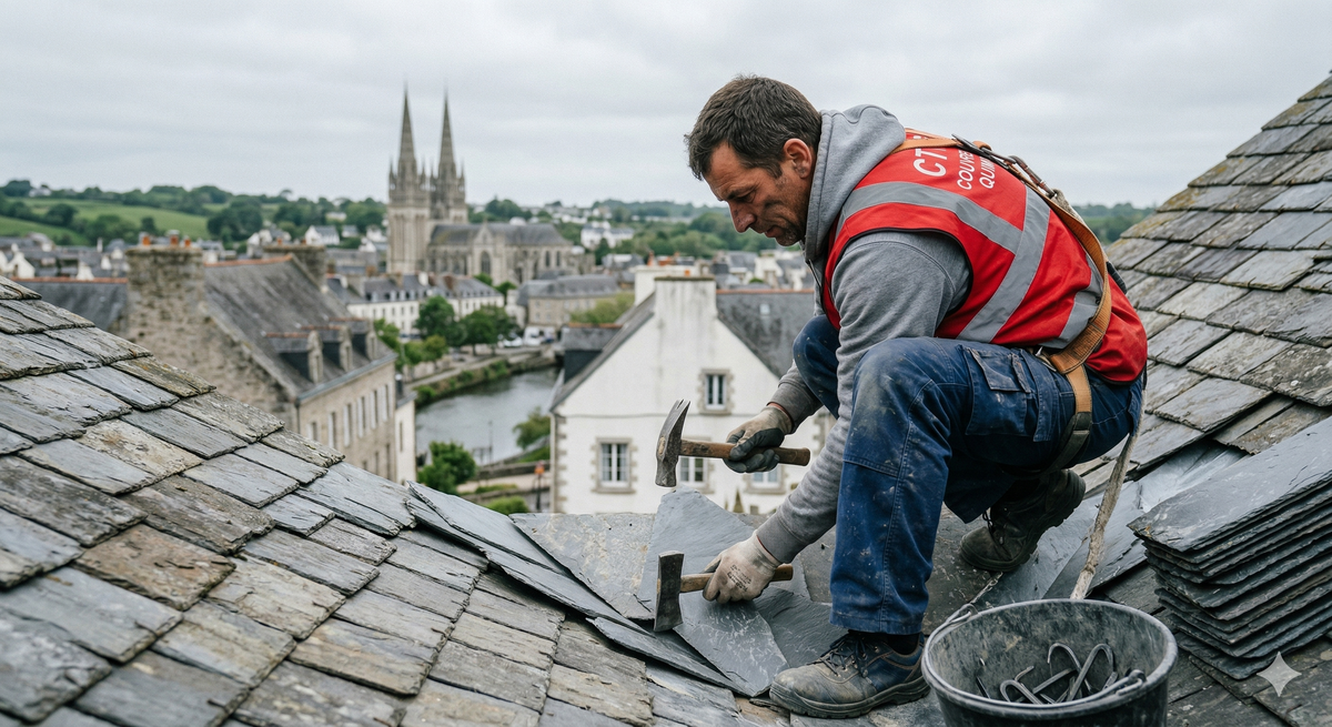 L'entreprise CT Couverture déploie son savoir-faire sur l'ensemble du sud Finistère. Basés à Quimper, nous sommes les spécialistes de la réactivité pour vos chantiers de toiture à Ergué-Gabéric, Pluguffan, Plomelin, Gouesnach ou Fouesnant. Que vous soyez à Bénodet, Pont-l'Abbé, Briec ou Saint-Évarzec, nous garantissons un déplacement gratuit et une expertise immédiate de votre habitat.Notre connaissance parfaite du climat breton et des toitures en ardoise nous permet d'intervenir avec précision sur tout le département. Un projet de rénovation, un besoin de nettoyage de façade ou une urgence fuite de toit dans le 29 ? Profitez de la puissance d'un réseau local et d'une intervention certifiée au meilleur prix pour vos gouttières, vos VELUX ou votre peinture de façade.